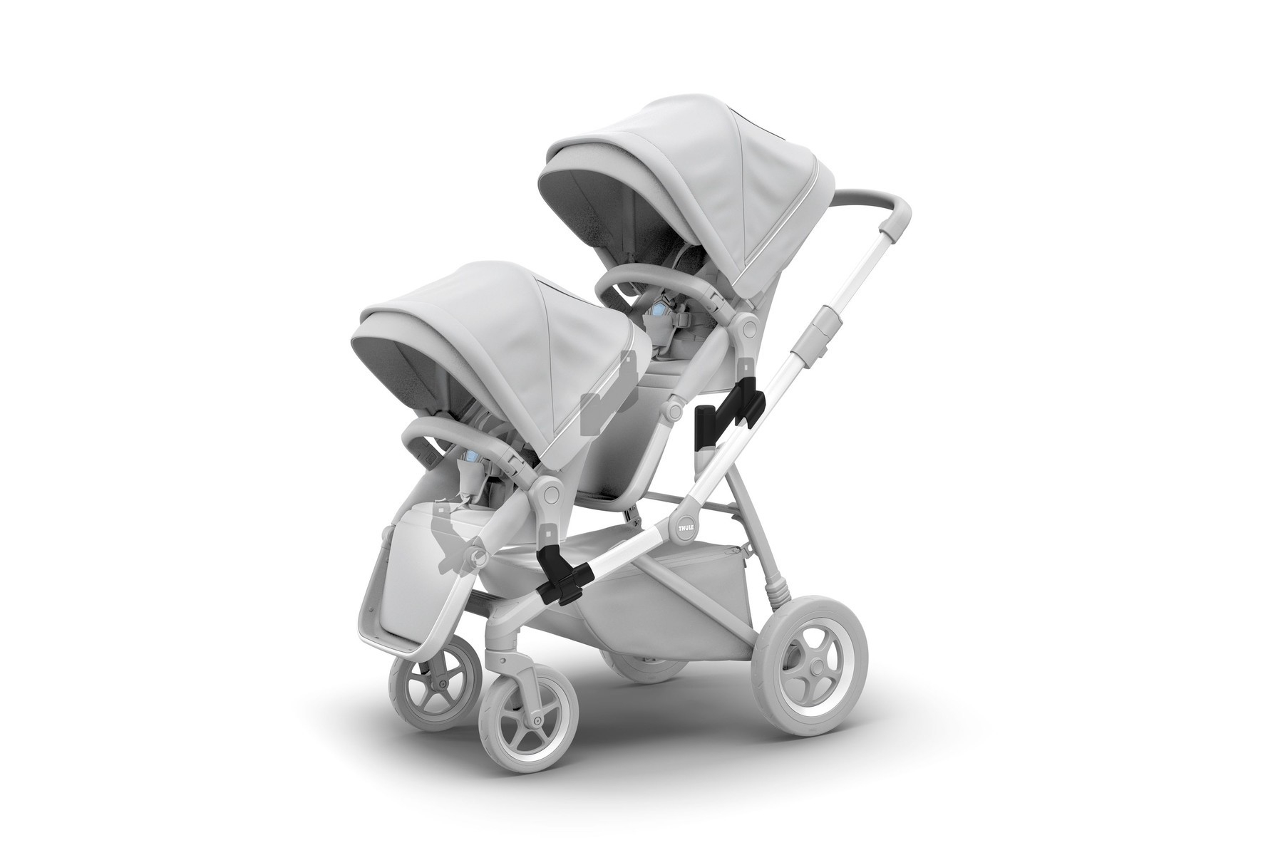 Adaptadores superiores e inferiores para configurar Thule Sleek en una carriola para hermanos.