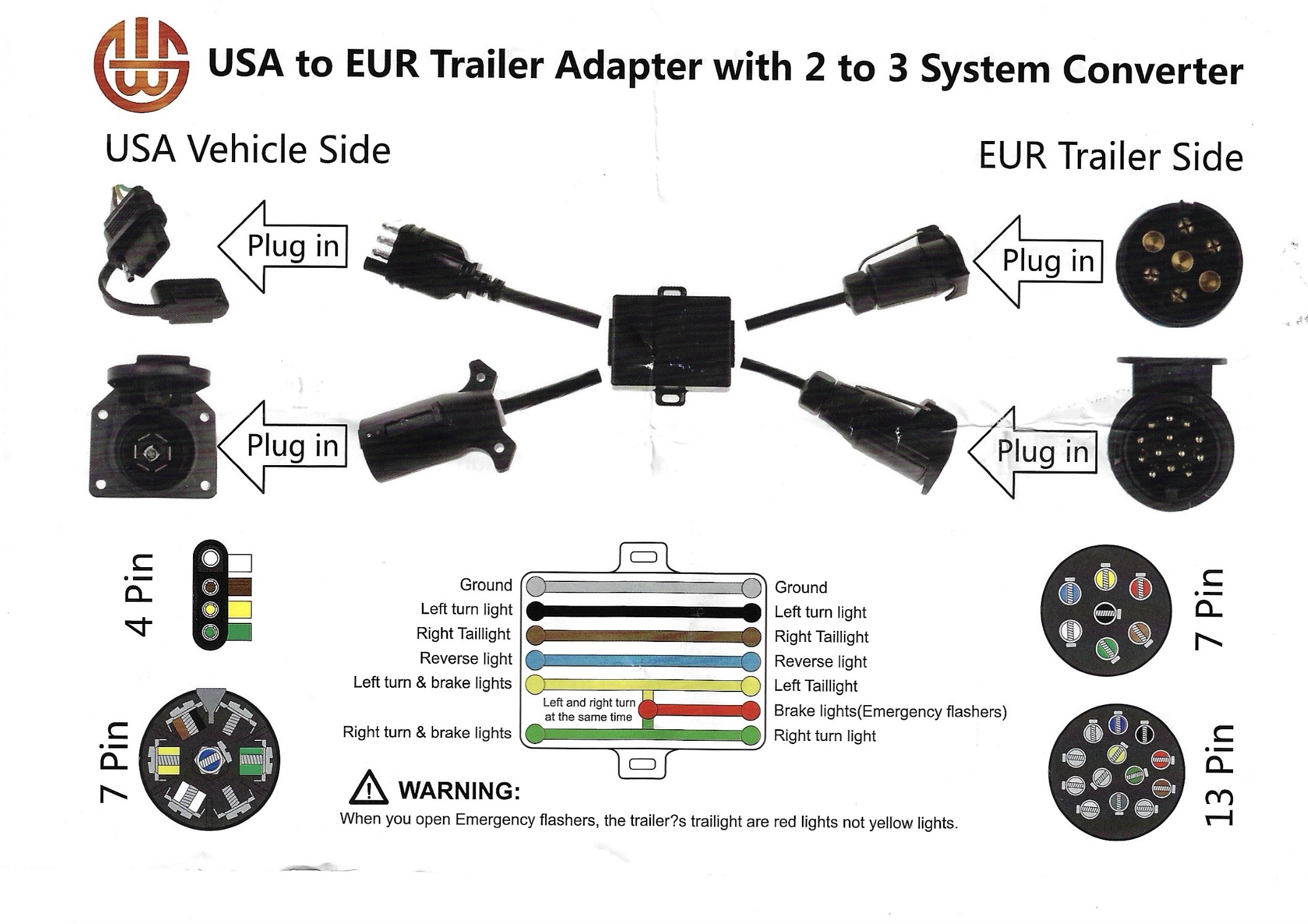 *Este convertidor de luces de remolque para vehículos europeos con luces de giro y freno independientes para conectar su caravana o remolque estándar (caravana, remolque de barco, portabicicletas y otros). Proporciona una solución eléctrica que si tienes un vehículo europeo con conector redondo de 7 pines y quieres enganchar un remolque, con un enchufe plano de 4 pines.