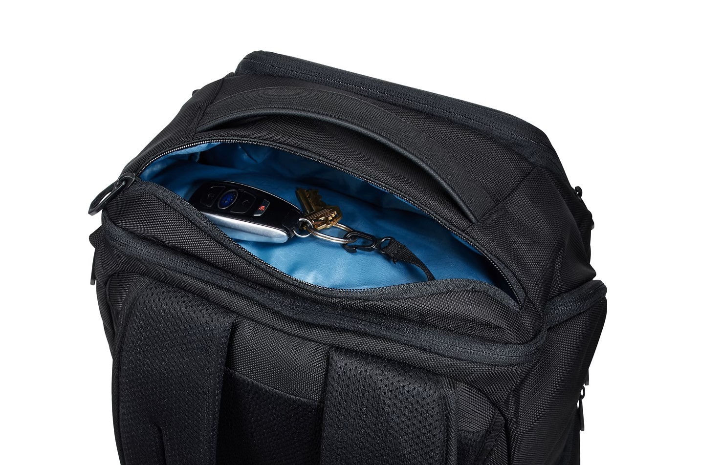 La mochila Thule Accent 28L está equipada con compartimentos internos bien distribuidos y accesos rápidos para objetos pequeños como llaves o bolígrafos. Incorpora características adicionales como un sistema de gestión de cables para auriculares y un bolsillo exterior para botellas de agua, añadiendo funcionalidad extra para el día a día.