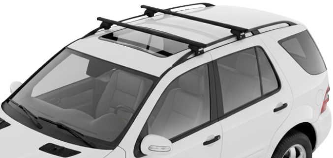 Barras de techo THULE para vehículo marca MERCEDES BENZ M-Class (W163) con Rieles Elevados, para años desde 2002 - 2005
