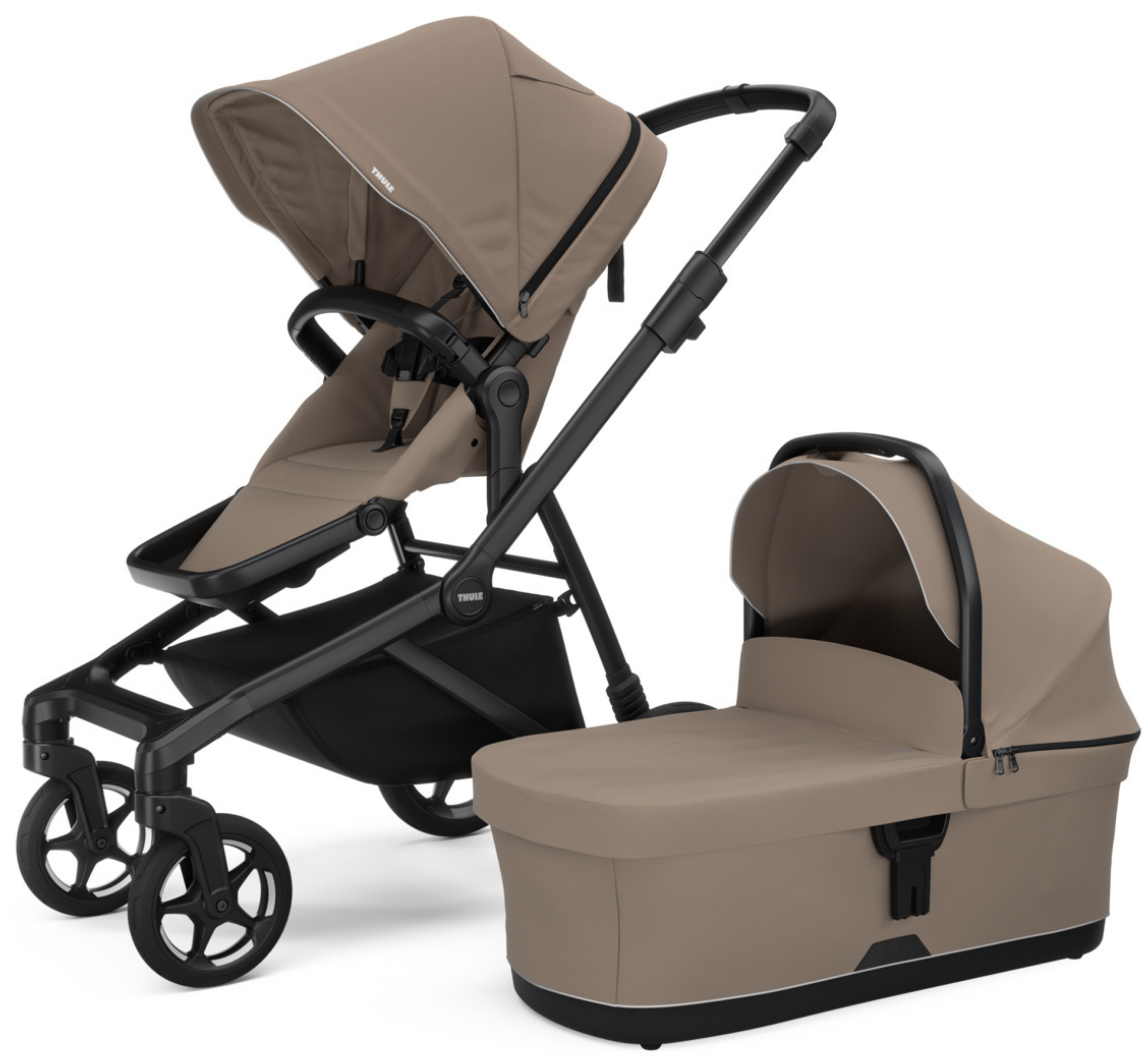 Coche urbano premium y versátil, ideal desde recién nacido gracias a su bassinet incluido. El Thule Sleek 2 Bundle ofrece manejo suave, asiento reversible y reclinable, gran canasto de carga y opción de ampliarse para dos niños, perfecto para familias activas en la ciudad. Pack Coche THULE Sleek 2 + Bassinet | Taupe
