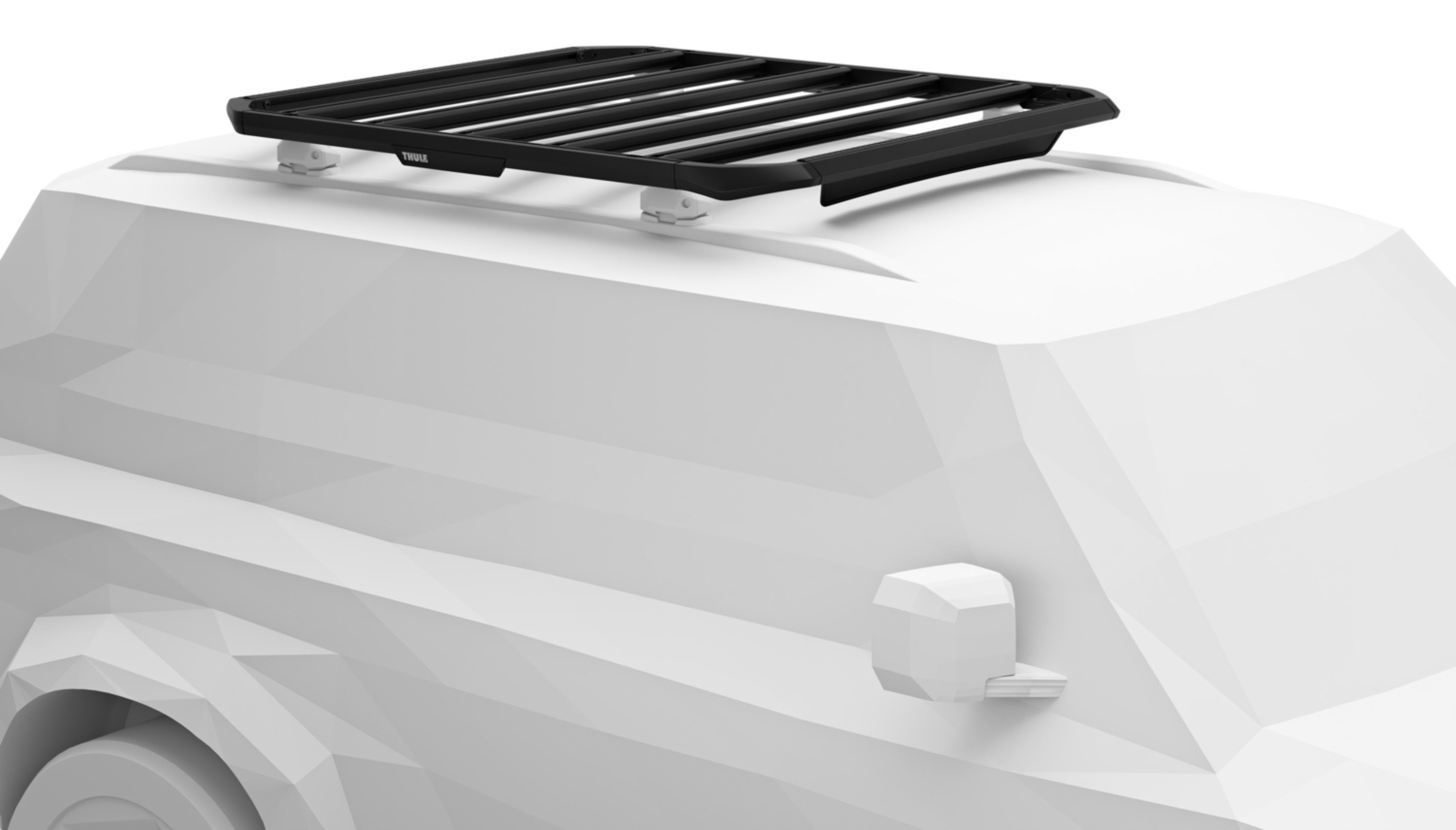 Monte varios productos de portaequipajes Thule, una carpa de techo o accesorios para excursiones por tierra, campamentos y más en el sistema de rieles integrado y las barras transversales de la base.