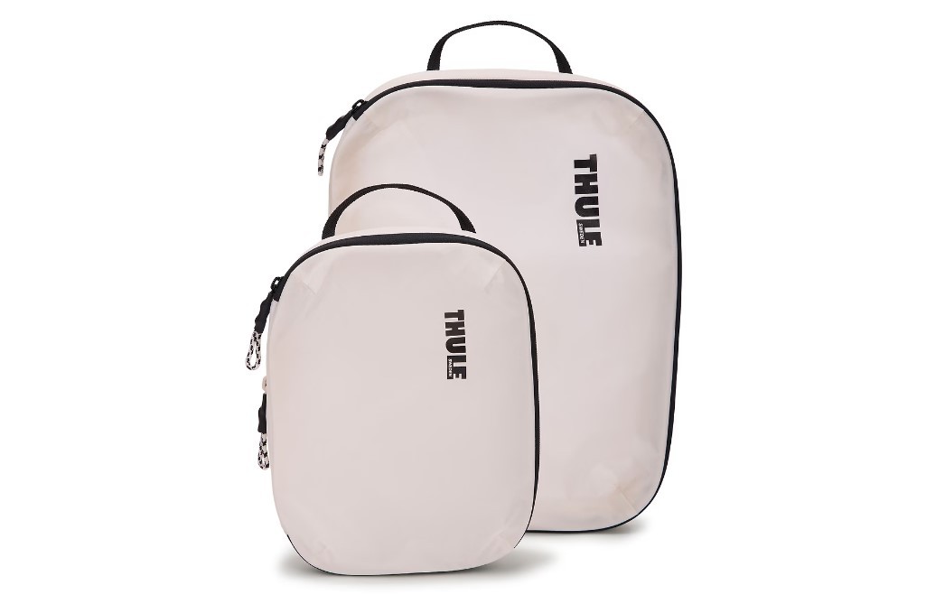 El juego de Bolsos Thule Set Separador de Ropa Sucia Clean Dirty White, están diseñados para optimizar la organización del equipaje, permitiendo separar la ropa limpia de la sucia de manera eficiente. Este set incluye dos bolsos de compresión, uno mediano y uno pequeño, lo que proporciona flexibilidad y mayor control del espacio al empacar.